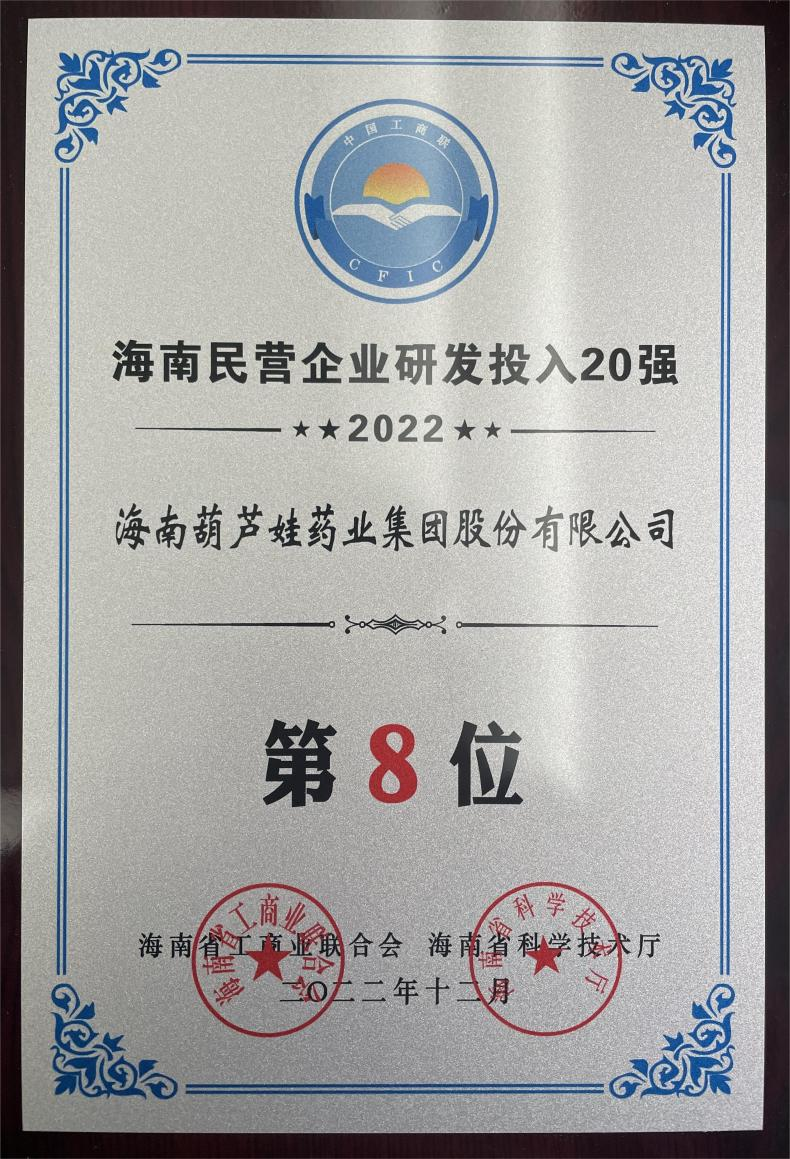 12月23日,2022海南民營企業(yè)50強和研發(fā)投入20強發(fā)布會在?誥儺小;嶸戲⒉劑恕2022海南民營企業(yè)50強”“2022海南民營企業(yè)研發(fā)投入20強”榜單和分析報告。海博測評藥業(yè)再次榮登兩榜,在海南民營企業(yè)50強榜單中位列第25位,較去年上升8位,這也是公司連續(xù)三年登榜;在海南民營企業(yè)研發(fā)投入20強中位列第8位,較去年上升7位。